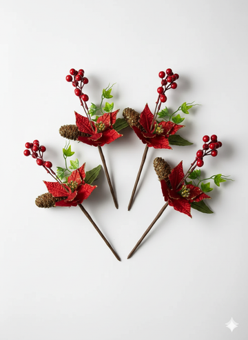 Crenguta decorativa cu craciunita rosie, conuri si bobite rosii 26cm. Adăugați o notă de eleganță...