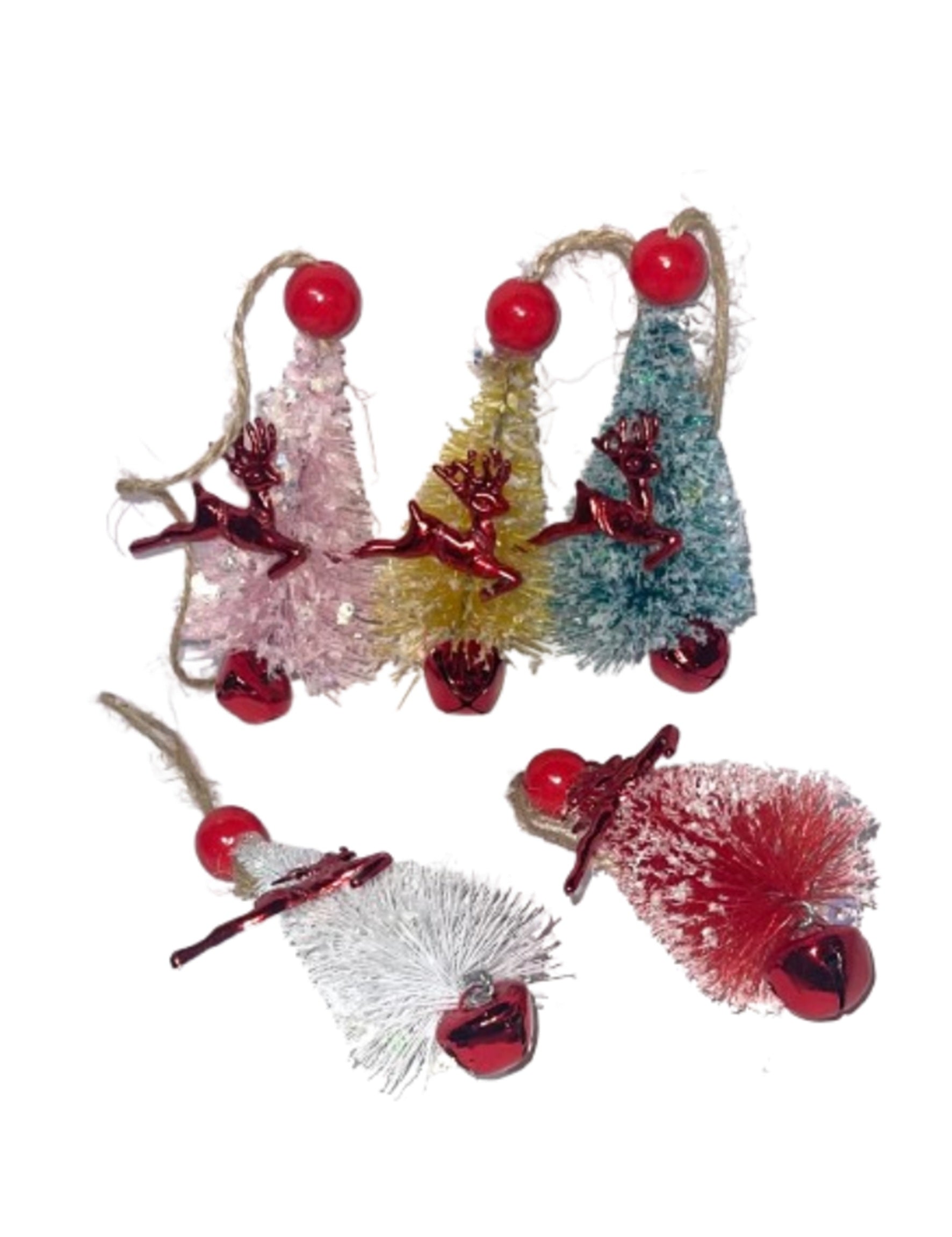 Decoratiune 12cm bradut 5 nuante cu clopotel 5/set. Pretul afisat este pentru un set cu 5 bucati
