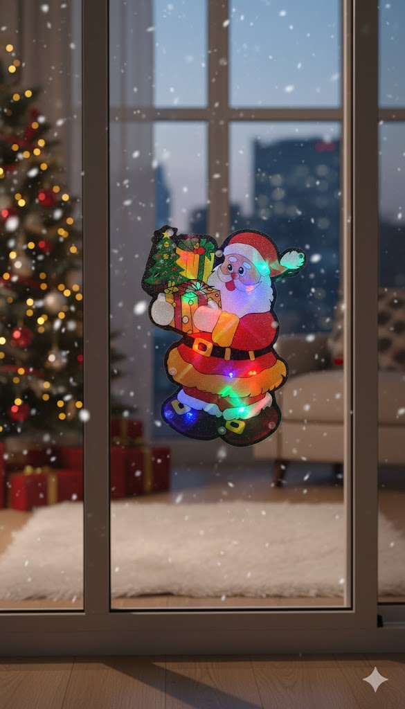 Aduceți magia sărbătorilor chiar în fereastra casei dumneavoastră cu această figurină luminoasă și plină de farmec! Figurina Moș Crăciun cu Cadouri este o decorațiune veselă, concepută special pentru a crea o atmosferă caldă și primitoare, vizibilă atât din interior, cât și din exterior.
